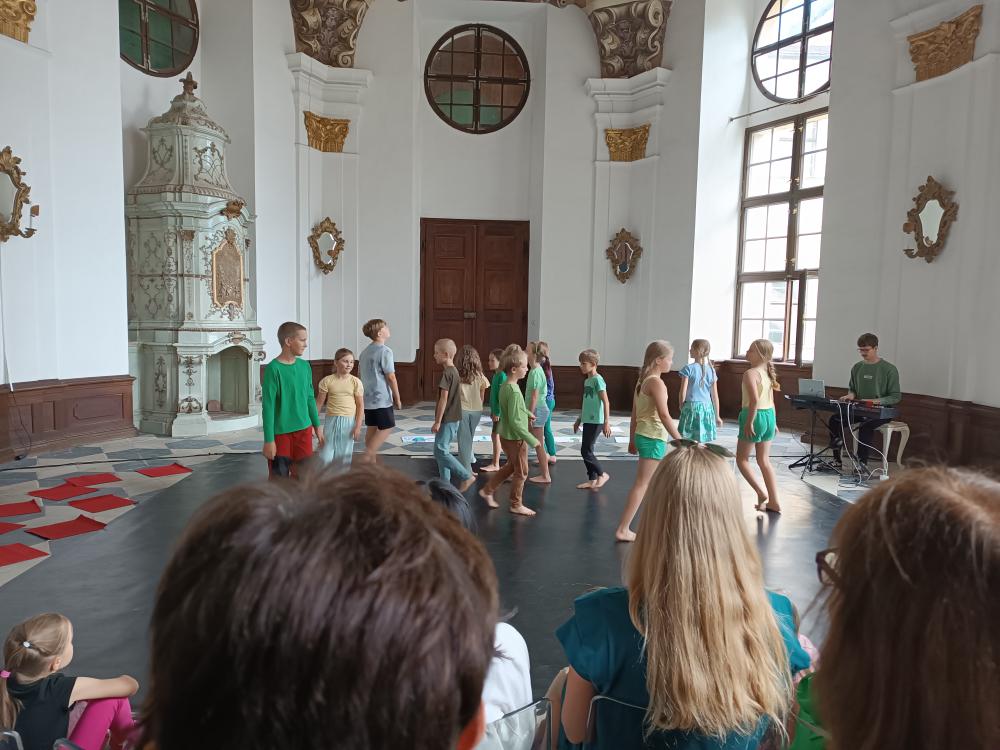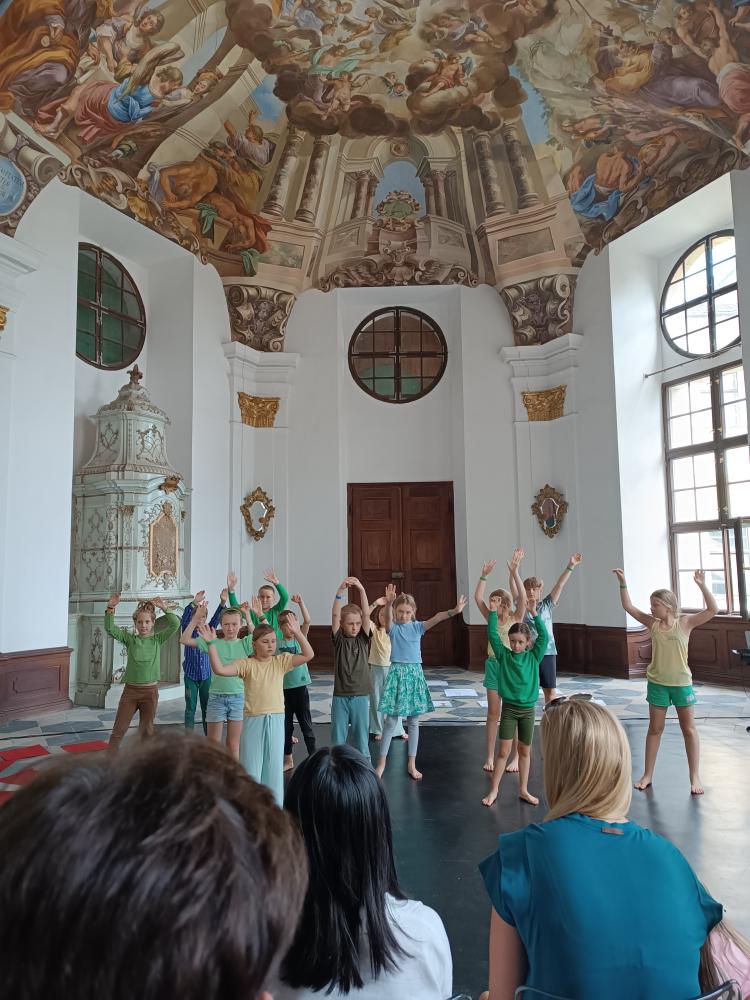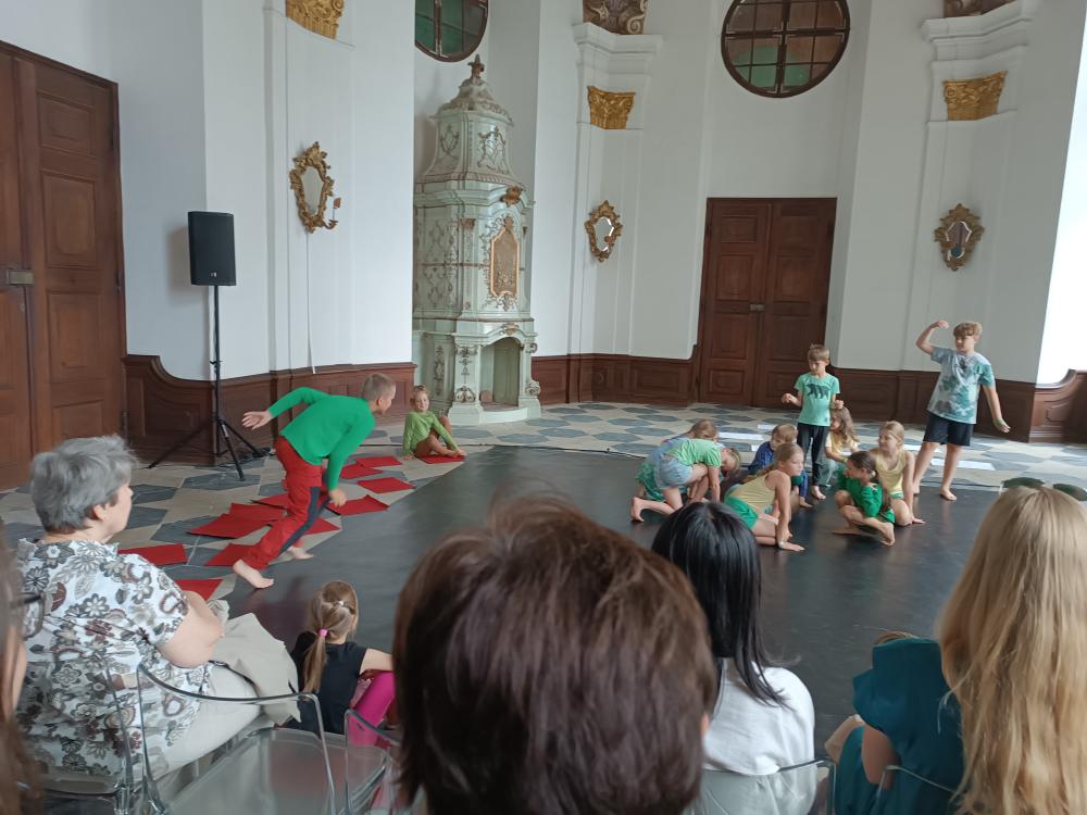 V neděli 13. července se žáci 2. a 3. ročníku naší školy představili v krásném prostředí freskového sálu zámku ve Žďáře nad Sázavou. Vystoupili zde v rámci projektu Škola tančí s naším letošním tématem Tančíme lesem. Tuto aktivitu nám finančně podpořil Fond Vysočiny – Program MÍSTNÍ AGENDA 21 A ZDRAVÍ 2030 V KRAJI VYSOČINA 2025.(https://www.kr-vysocina.cz/ )