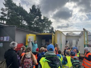 Ve čtvrtek 9. října jsme s žáky navštívili sběrný dvůr ve Velkém Meziříčí. Celou exkurzí nás provedla Ing. Jana Košťálová. Děti tak měly možnost nahlédnout do prostor pro sběr stavebních, využitelných, nebezpečných a elektronických odpadů. Vyslechly, jak probíhá celá evidence odpadu od příjezdu vozidla na mostovou váhu, až po jeho zpracování. Dozvěděly se, proč má smysl odpad třídit, a kam jinam než do místních kontejnerů ho můžeme běžně vyvézt.