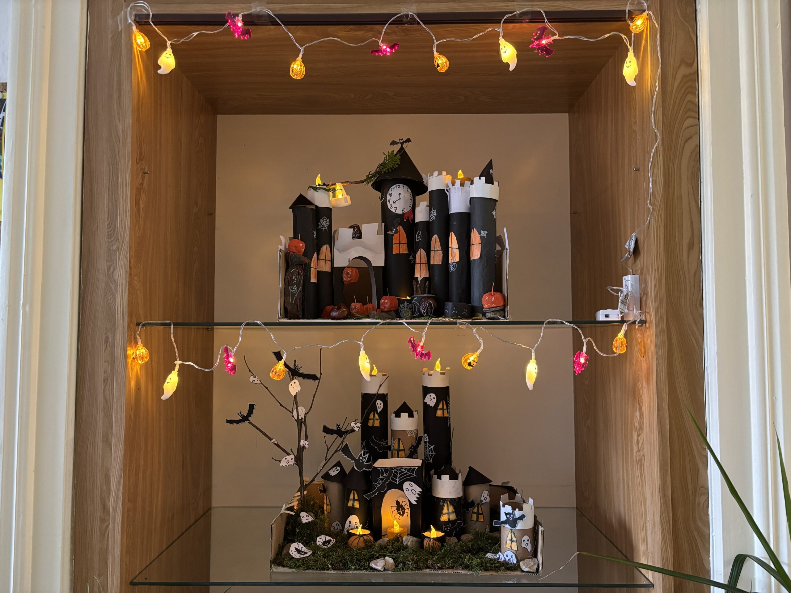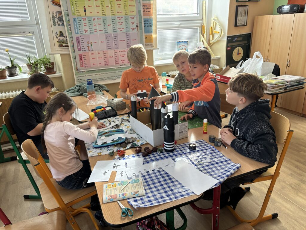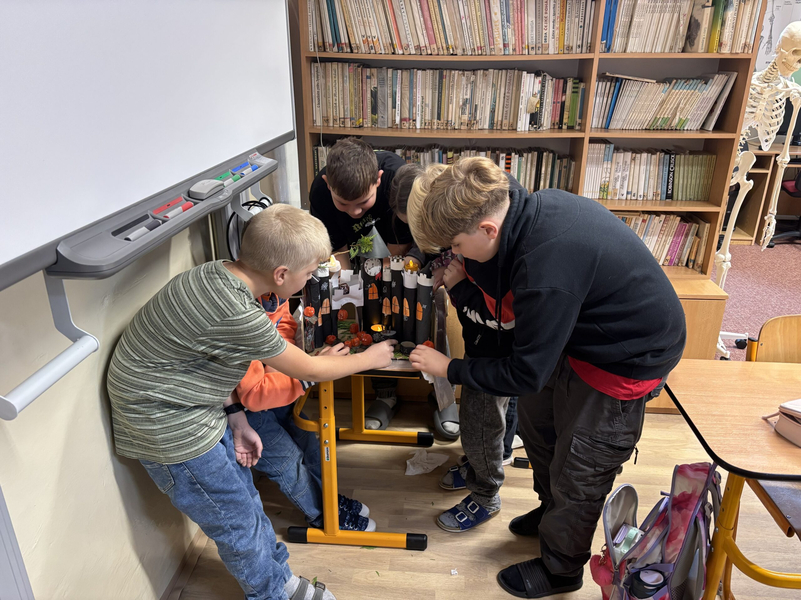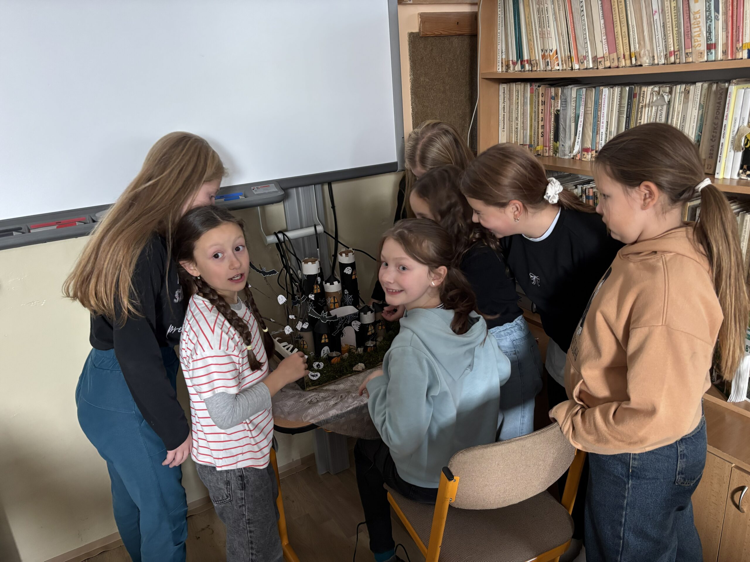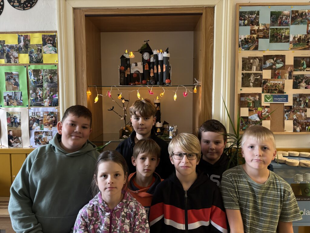 V hodinách pracovních činností žáci ze 4. a 5. ročníku vyráběli strašidelný hrad. Vlastně hrady dva, protože se třída rozdělila na dvě skupiny. Každá skupina si vytvořila vlastní návrh stavby a potom již žáci řezali, stříhali, lepili a kreslili. Na závěr stavby doplnili dekoracemi. A vy se nyní můžete podívat, jak se jim hrady podařily.