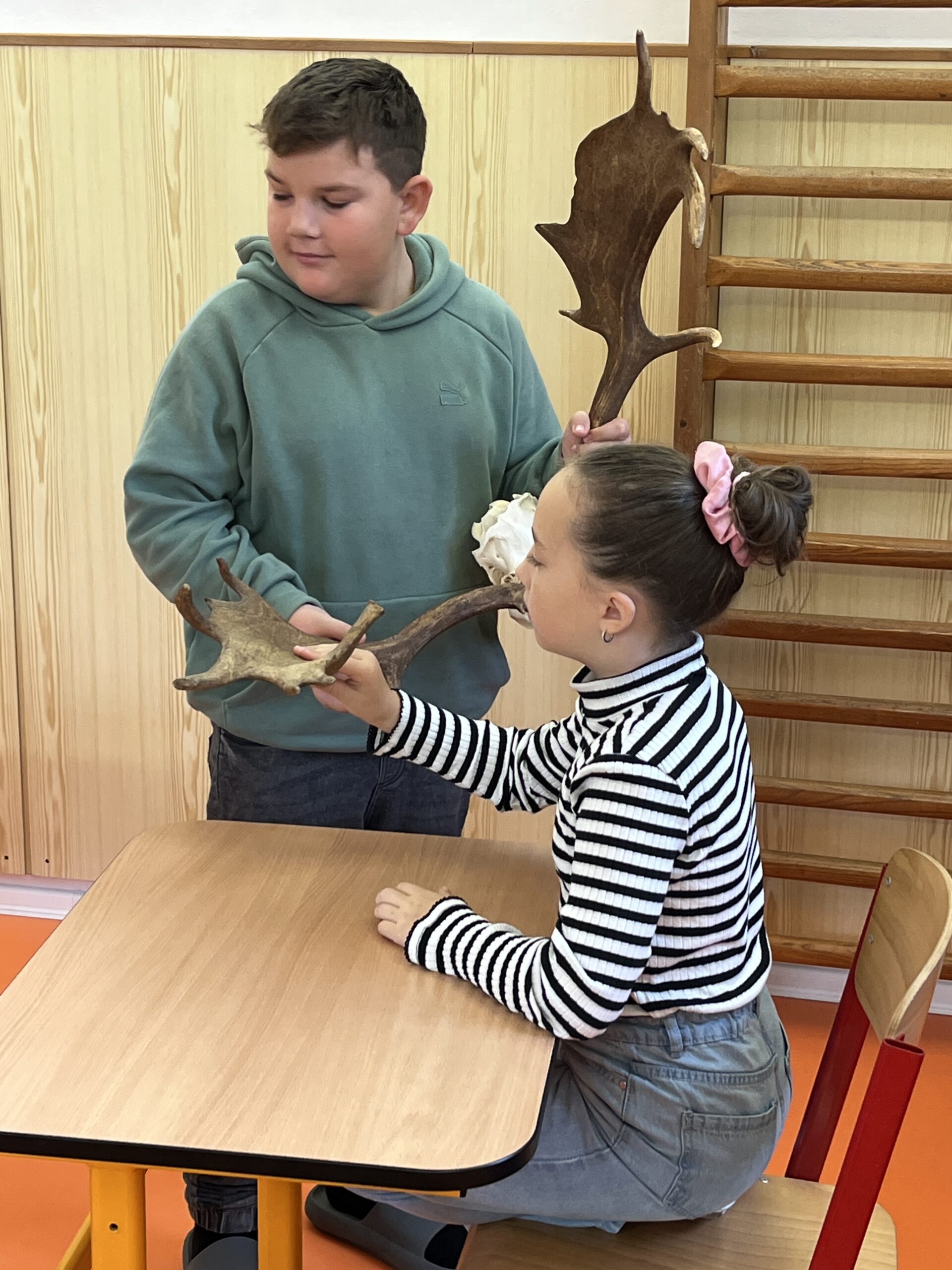 Dozvěděli jsme se, jaké pomůcky myslivec potřebuje – od dalekohledu, oděvu v přírodních barvách, až po loveckou zbraň. David také zmínil, že lov má svá přesná pravidla – každé zvíře se smí lovit jen v určitém období roku, aby byla zachována rovnováha v přírodě.