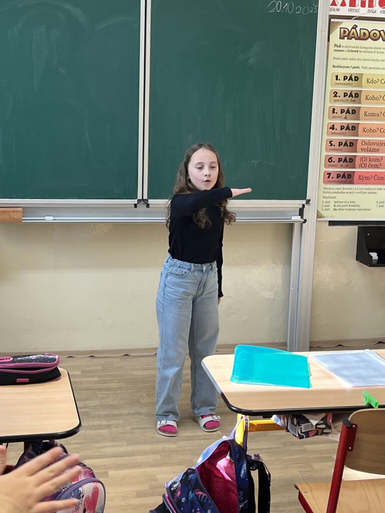 Naše žákyně Amálie, která již třetím rokem navštěvuje pěvecký sbor Slunko, si pro své spolužáky připravila zajímavé povídání o činnosti sboru a o tom, co vše obnáší společné zpívání.