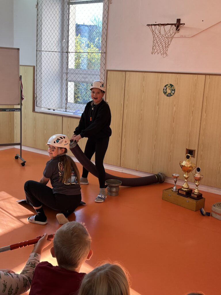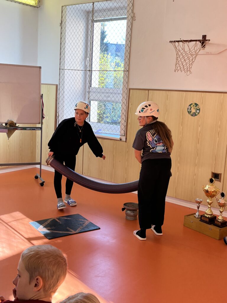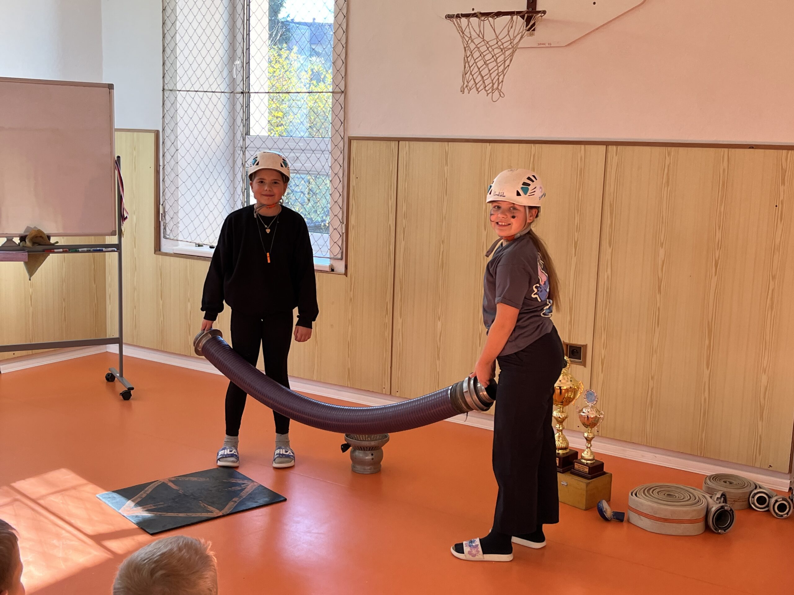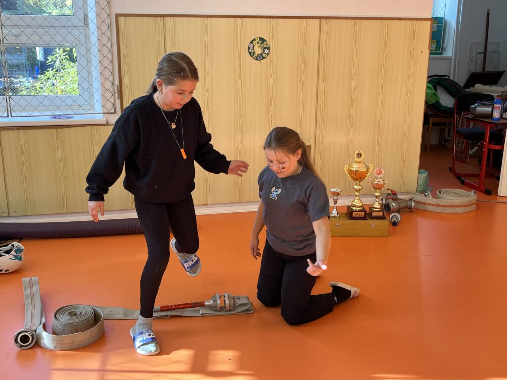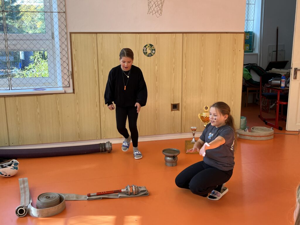 Děvčata nám vysvětlila, co všechno musí mladí hasiči umět, jak probíhá trénink a jaké dovednosti jsou pro tuto činnost důležité. Ukázaly také vybavení, které při trénincích používají, a pověděly nám, jaké oblečení je pro hasičský trénink nejvhodnější.