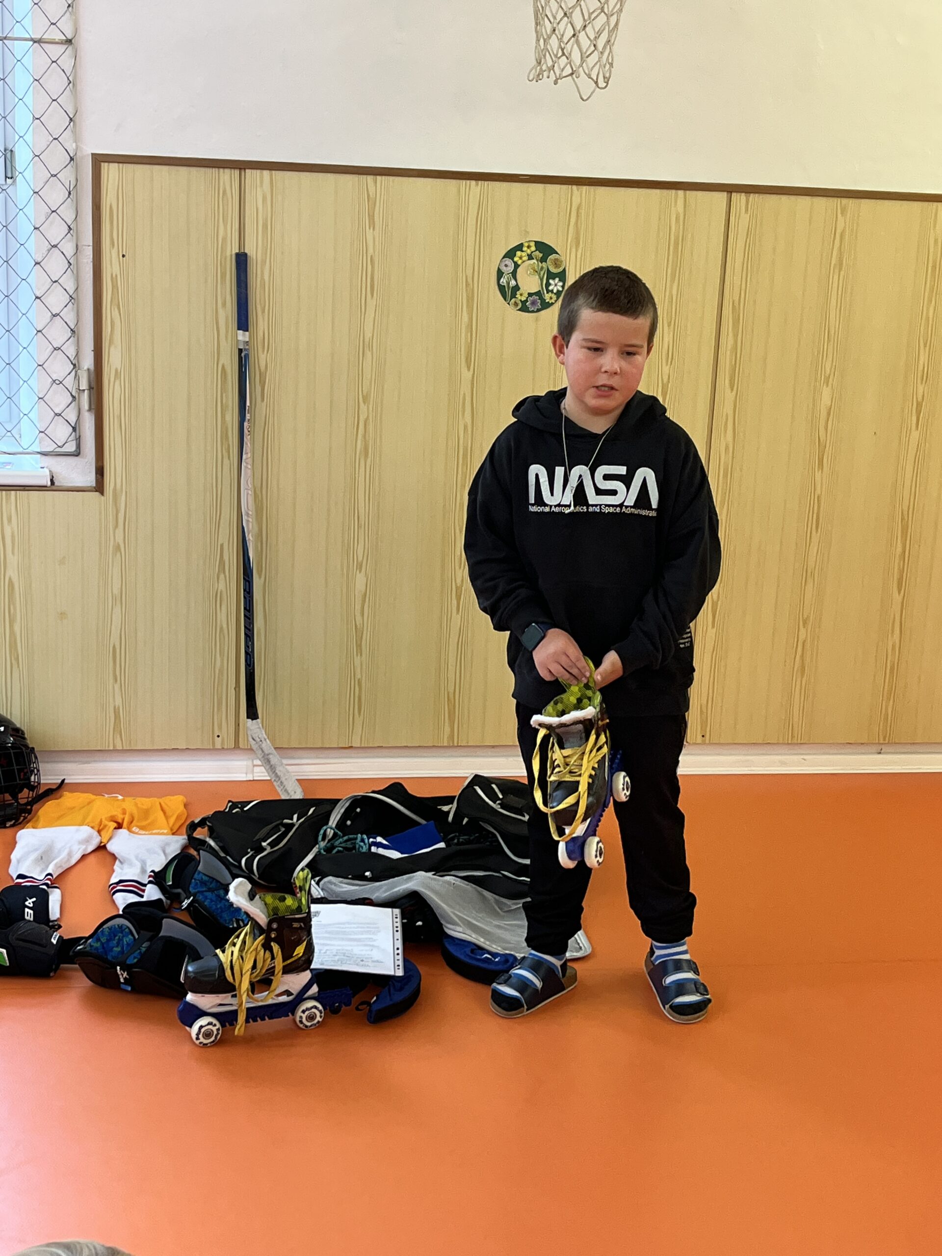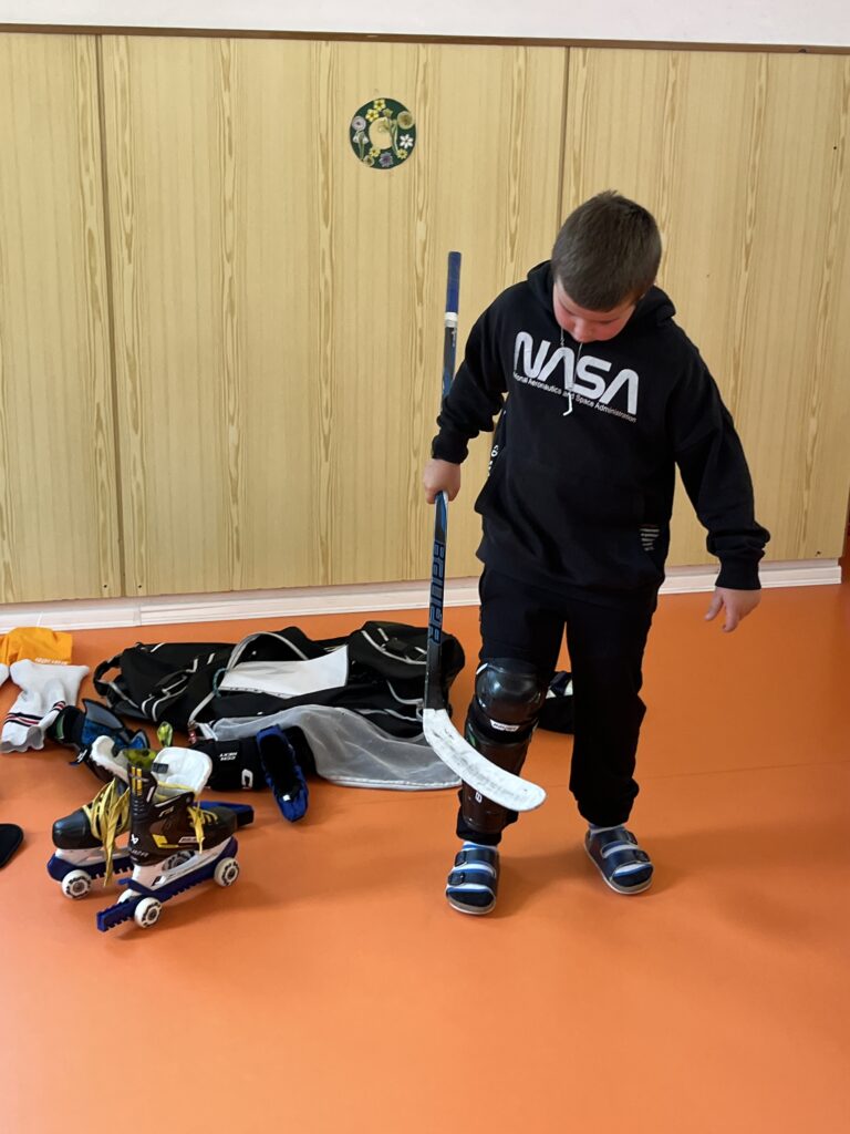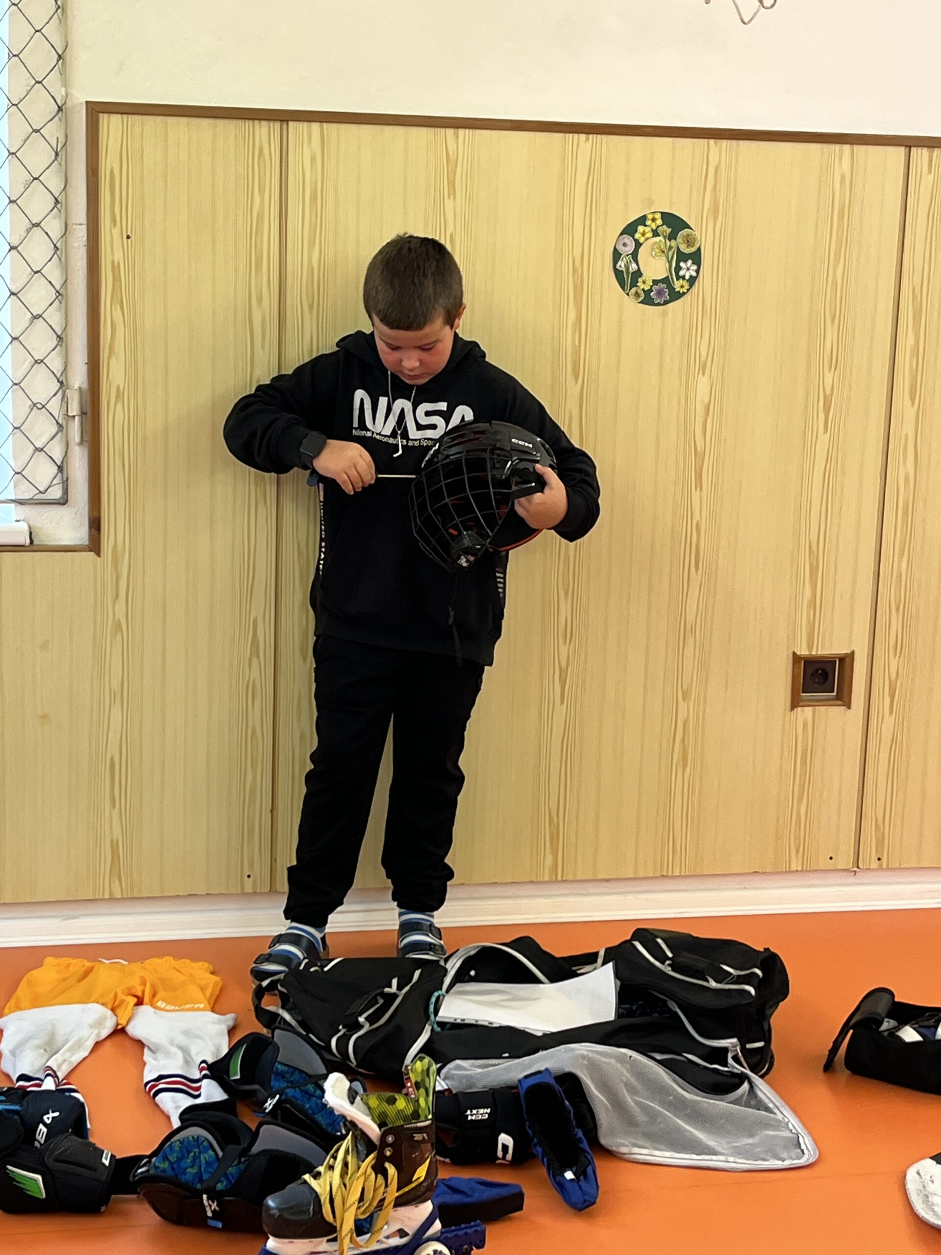 Trénuje několikrát týdně a upozornil nás, že hokejisté se musí neustále zlepšovat v bruslení, přihrávkách a střelbě. Nejdůležitější ze všeho je ale umět spolupracovat s ostatními hráči, protože bez týmu to na ledě nejde.