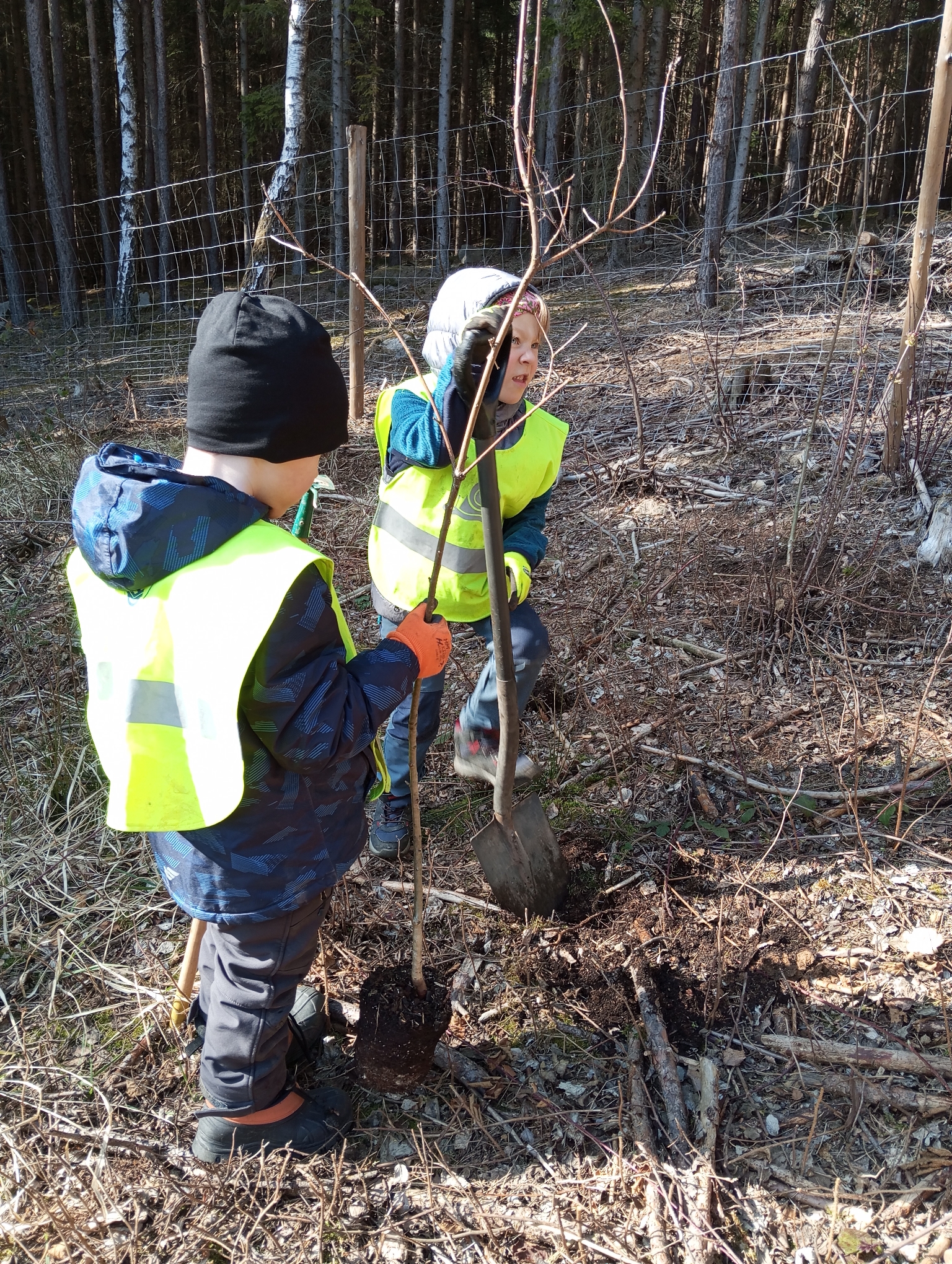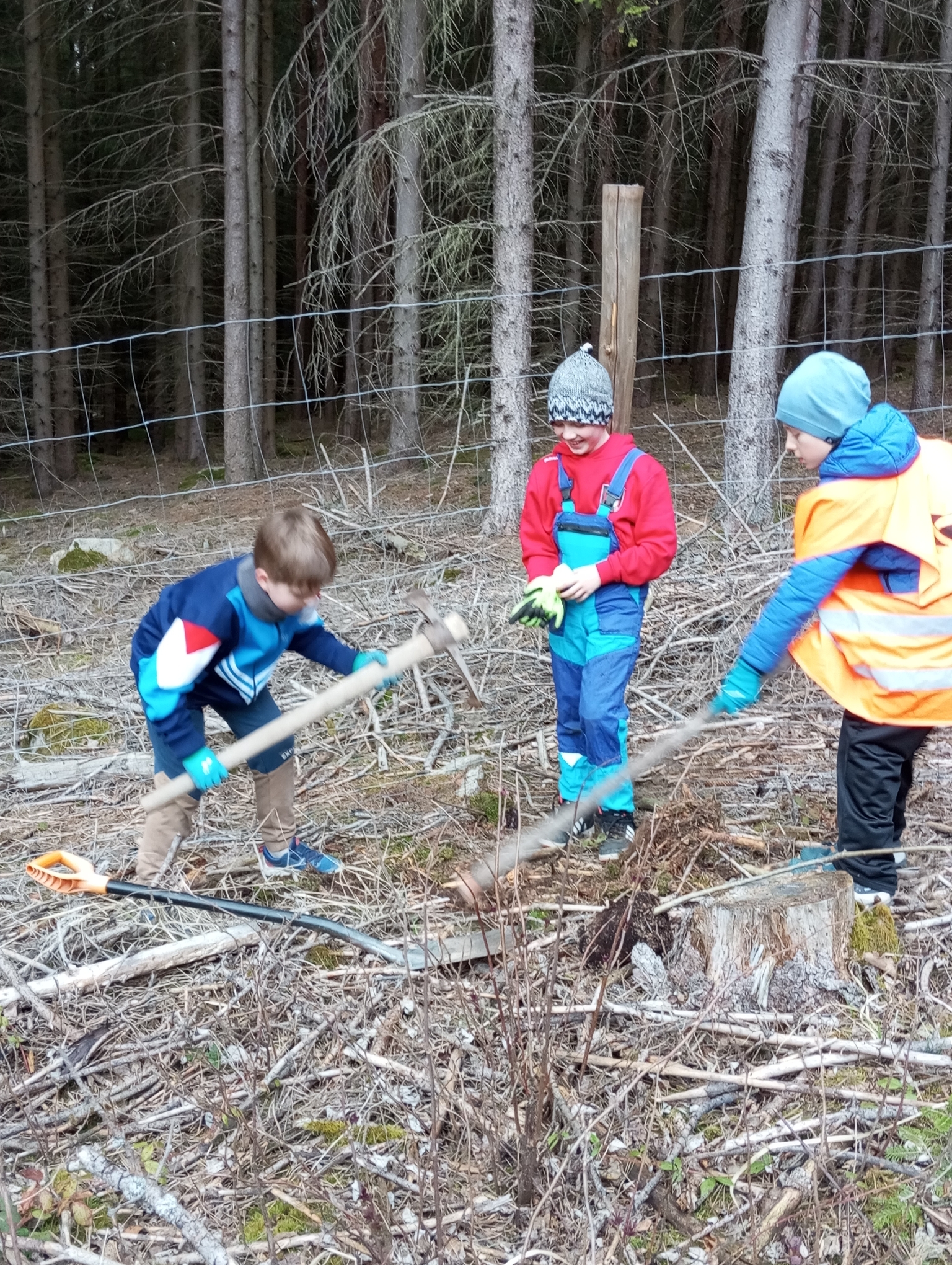 V úterý 17.3. jsme vyrazili se 14 statečnými sázet stromky do našeho školního lesa. I přes nepříznivé počasí, kdy se střídal déšť se sněhem, jsme nasadili pod odborným vedením pana Oulehly asi 130 dubů. Pověděli jsme si také o tom, jak správně stromek zasadit. Děti odvedly velký kus práce a přispěly tak k obnově českých lesů.