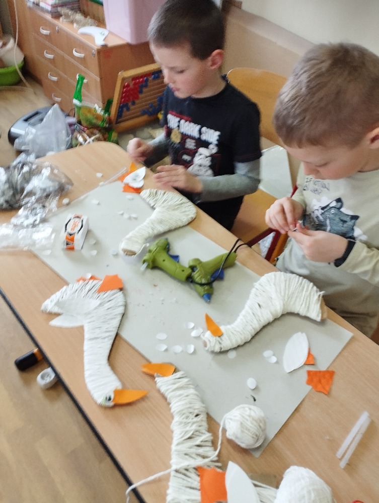 V pátek 20.3.2026 děti vyráběly  jarní dekoraci. Samotné vystřihnutí husy z kartonu a omotání kartonu bílou vlnou bylo pro některé děti velice náročné. Všechny děti se úkolu zdárně zhostily. Husičky teď budou spolu s jarními kvítky přivolávat dlouho očekávané jaro.