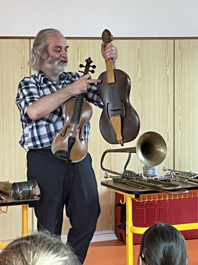 Pro pana přednášejícího jsou nástroje velkým koníčkem, několik let je sbírá a na všechny dokáže zahrát různé melodie. Děti často hádaly znělky z pohádek a společně s méně typickými nástroji si zazpívaly lidové písničky.